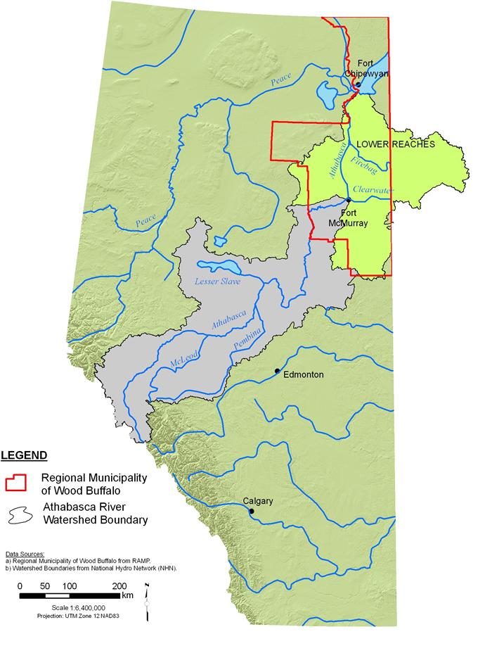 The lower reaches of the Athabasca River basin.