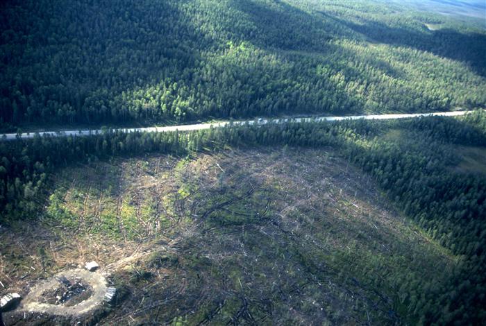 Clearcuts and roads lead to fragmentation of the boreal forest.