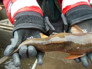 The occurrence of odd shaped-fish can have many causes. It is normal to occasionally discover deformed individuals in any fish population. A physical injury or drastic change in water temperature (usually an increase) when the fish is in the egg stage can produce fish with characteristic “stumpy” or “truncate” appearance. These same conditions can cause scoliosis, which is easily recognized because the fish has a distinct curve in its spine.