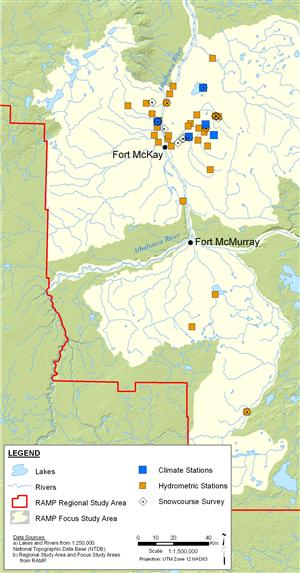 RAMP Climate and Hydrology data are generally integrated with data collected by other organizations (e.g., government), and are analyzed each year. Hydrographs for each station of interest are constructed from field data. Potential effects of oil sands development on hydrology are examined by comparing these measured hydrographs with the hydrograph that would have occurred if no development was present within the watershed (a calculated, “naturalized” hydrograph). Four specific measurement endpoints are used to assess differences between these hydrographs. These measurement endpoints include: