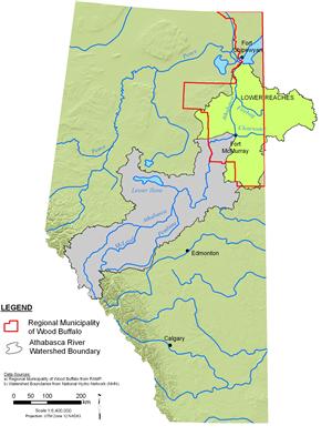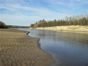 The Athabasca River forms the eastern boundary of Wood Buffalo National Park, where the landscape is dominated by wetlands, meadows, and black spruce forest. The Athabasca River flows into Lake Athabasca through a system of channels—including the Embarras River, Fletcher Channel, Goose Island Channel, and Big Point Channel—that extends through the delta (Prepas and Mitchell 1990). The Athabasca River accounts for the largest proportion of inflowing water to Lake Athabasca, contributing an estimated 80% to 90% of the lake’s outflowing water during spring and summer peak flows (Prepas and Mitchell 1990).